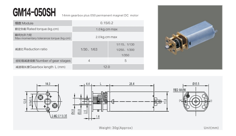 14mm gearbox plus 050 permanent magnet DC motor